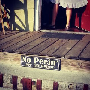 No peein’ off the porch